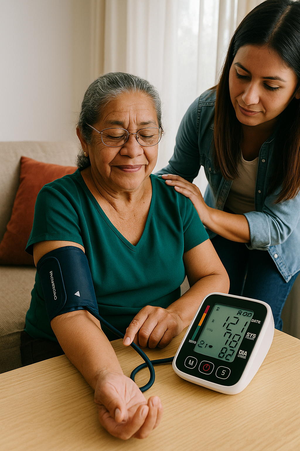“Antes tenía miedo de que la presión me subiera sin darme cuenta. Mi hija me ayuda a medírmela todos los días con este tensiómetro y ahora vivimos más tranquilas. La voz en español me guía solita, y los números se ven claritos. Es lo mejor que he comprado para mi salud.”